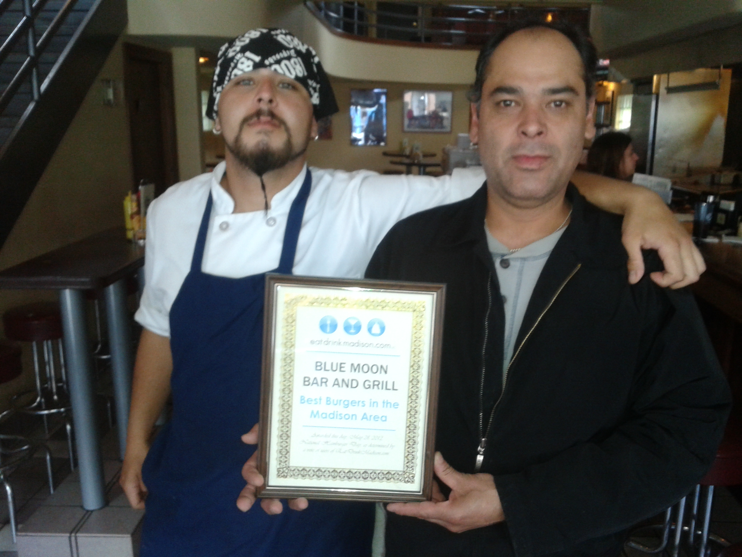 (MADISON, Wis.)--Voters of an online poll conducted by EatDrinkMadison.com have picked the Blue Moon Bar and Grill as having the best burgers in the Madison area.