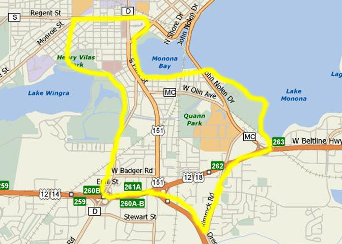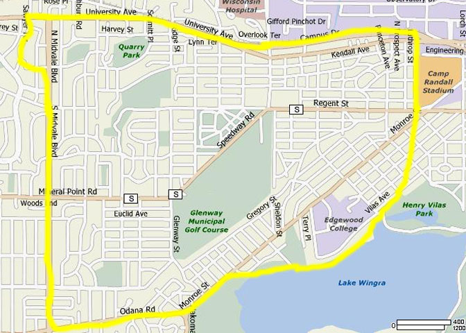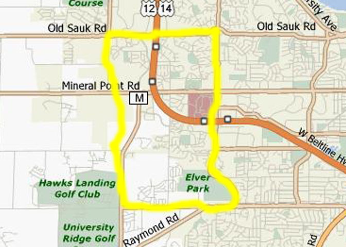 - West: Gammon Road/McKenna Boulevard to Raymond Road to Verona Road to Midvale Boulevard to University Avenue. MAP